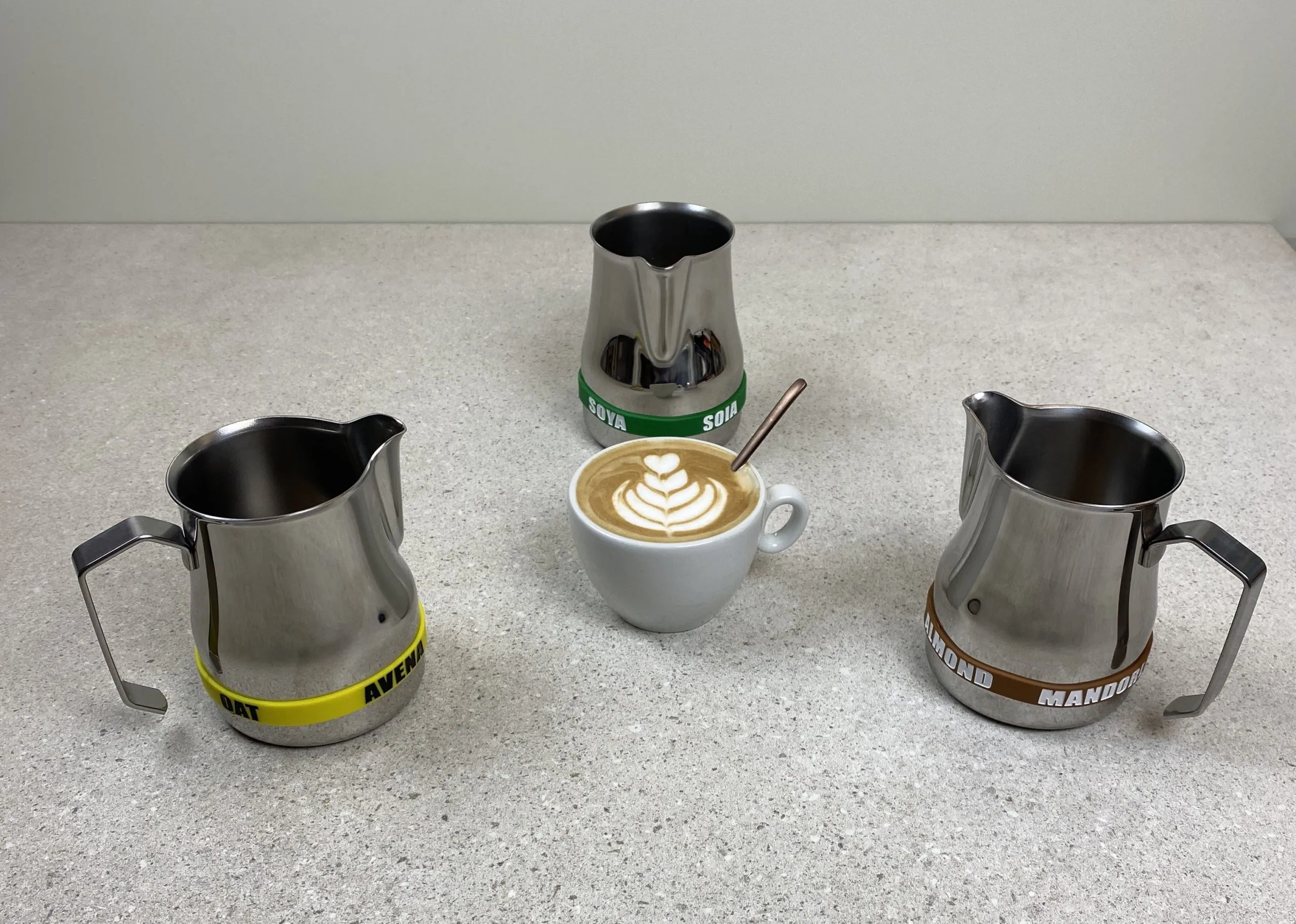 Cappuccino con Soya, Cappuccino con Mandorla, Cappuccino con Avena, per offrire queste, e tante altre bevande in caffetteria evitando contaminazioni tra diverse bevande, che in alcuni casi possono essere pericolose a causa di allergie e intolleranze, è fondamentale utilizzare lattiere dedicate per ognuna di queste.