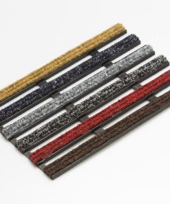 Composizione: robusti profili in alluminio tubolari (sezione media 1,2 mm; lega 6060) con rivestimento in agugliato accoppiati a profilo in gomma EPDM lamellare