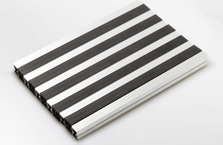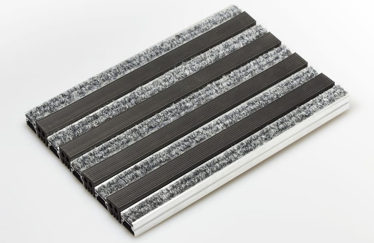 Pregi: possibilità di scegliere la distanza fra i profili e il drenaggio dello zerbino, perfetto per ambienti domestici e piccoli negozi, pratico da pulire e mantenere, parti sostituibili